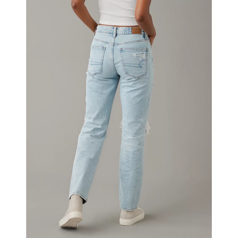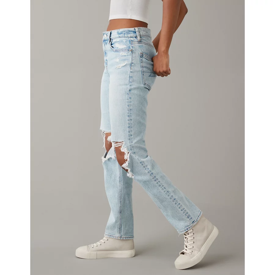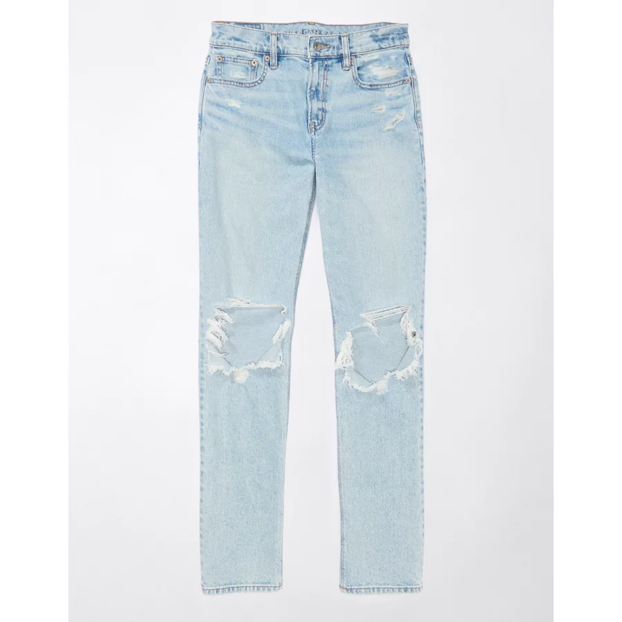 AE Stretch Super High-Waisted Ripped Ankle Straight Jean – Skylight