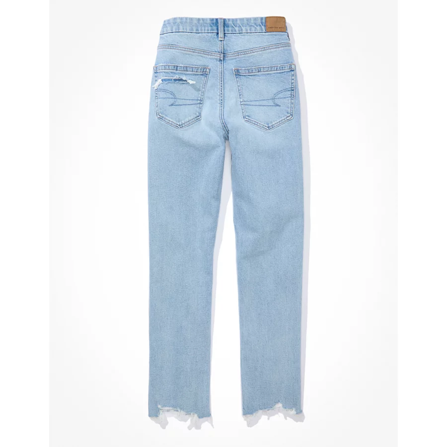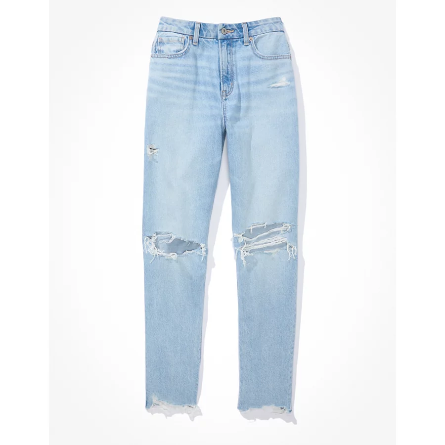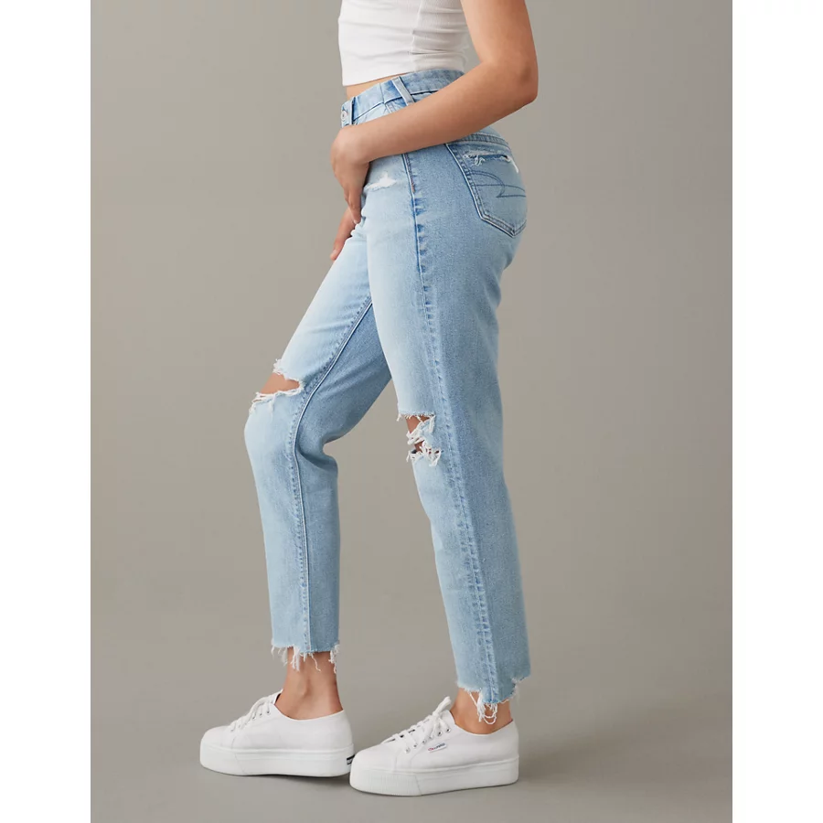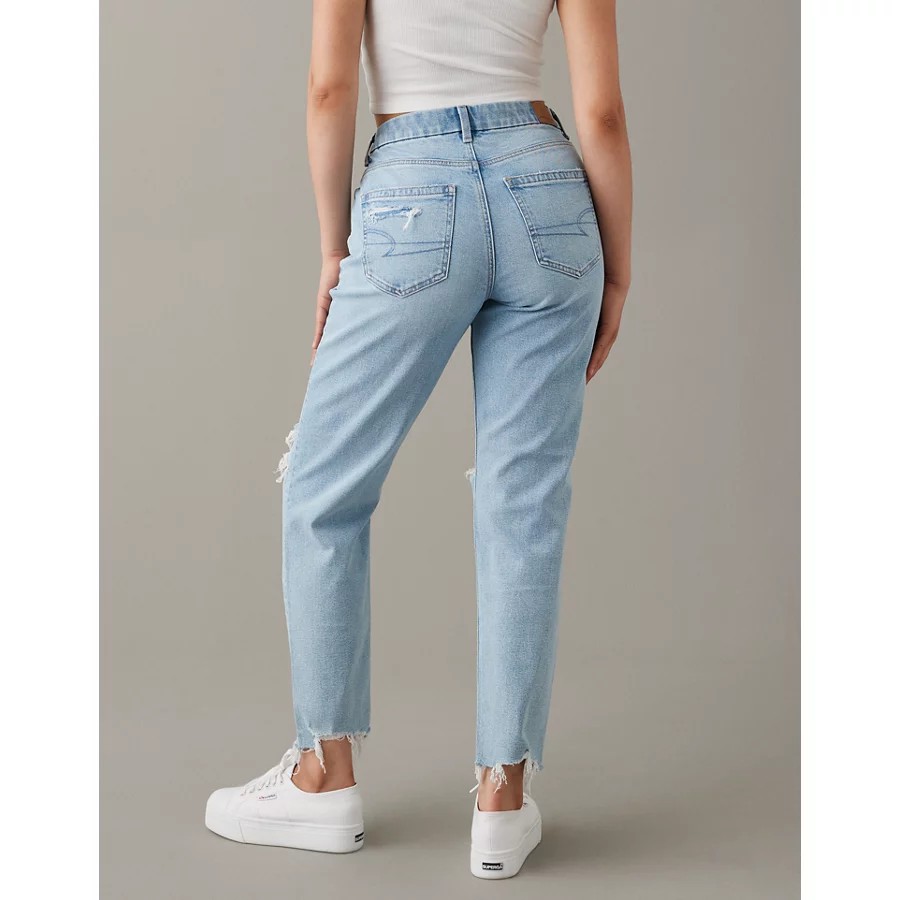AE Strigid Curvy Ripped Mom Jean – Light Destroy Wash