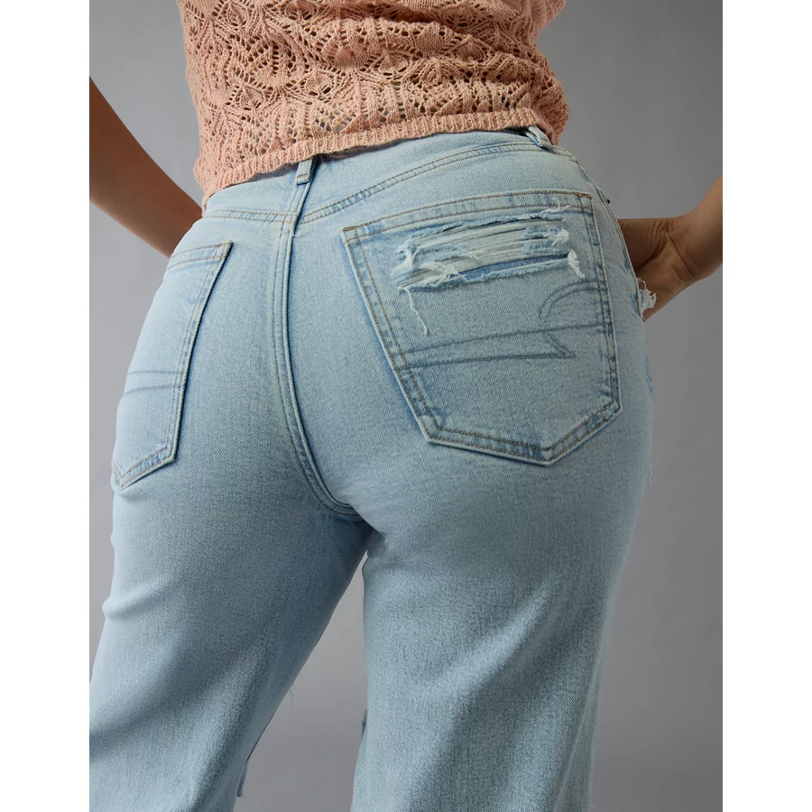 AE Strigid Curvy Ripped Mom Jean - Light Destroy Wash