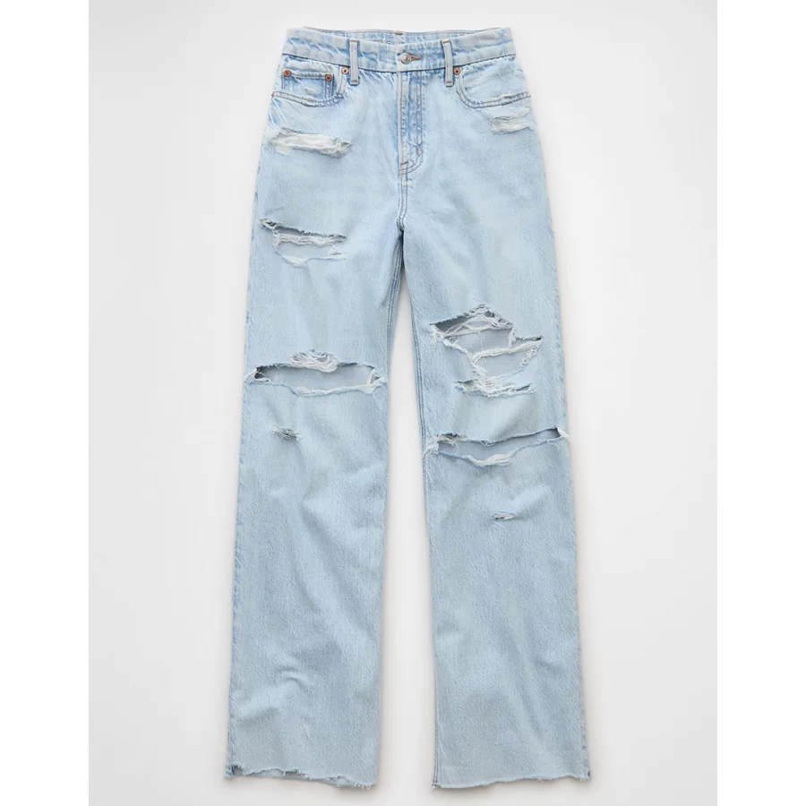 AE Strigid Curvy Ripped Super High-Waisted Baggy Straight Jean – Ultra Light Crackle