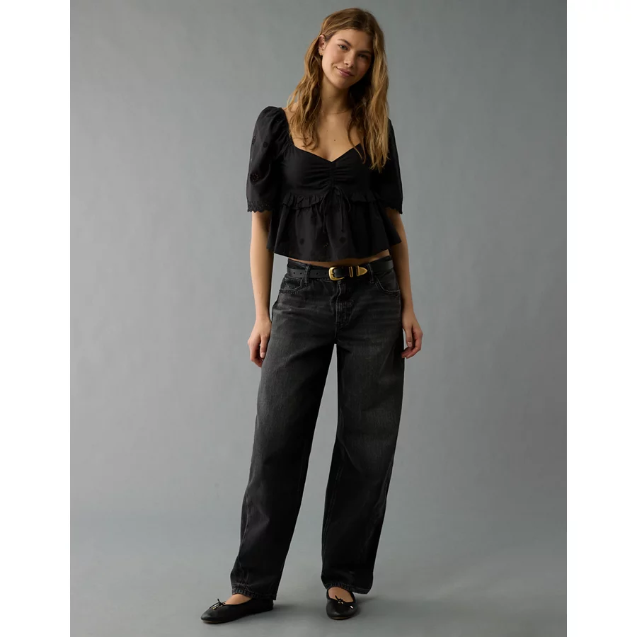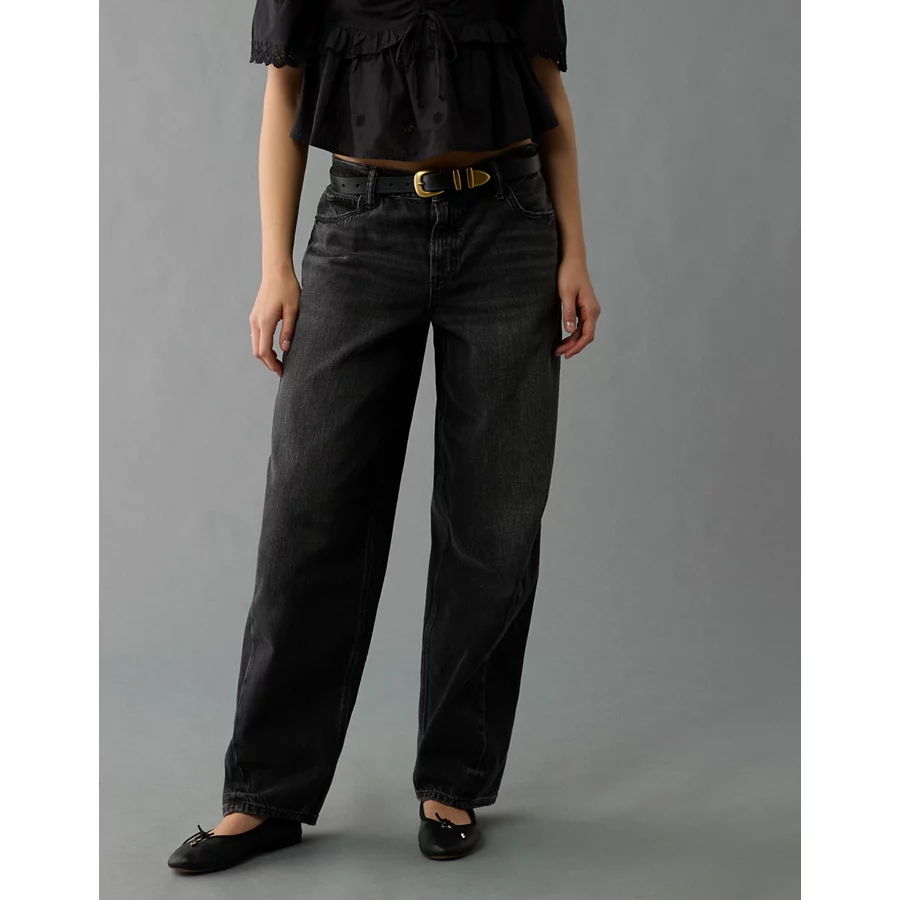 AE Strigid Low-Rise Baggy Barrel Jean – Washed Black