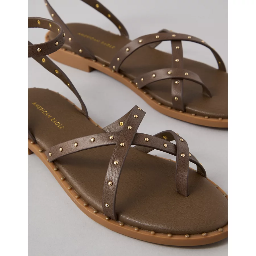AE Studded Ankle Strap Sandal – Medium Brown