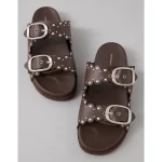 AE Studded Double Buckle Sandal - Black