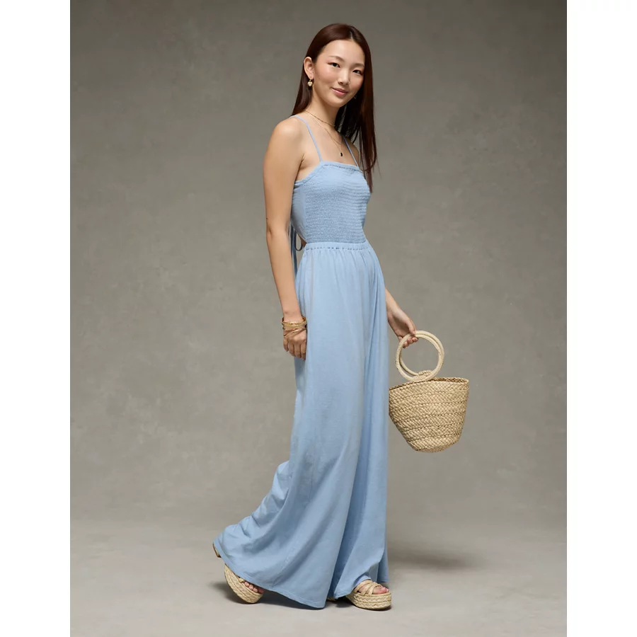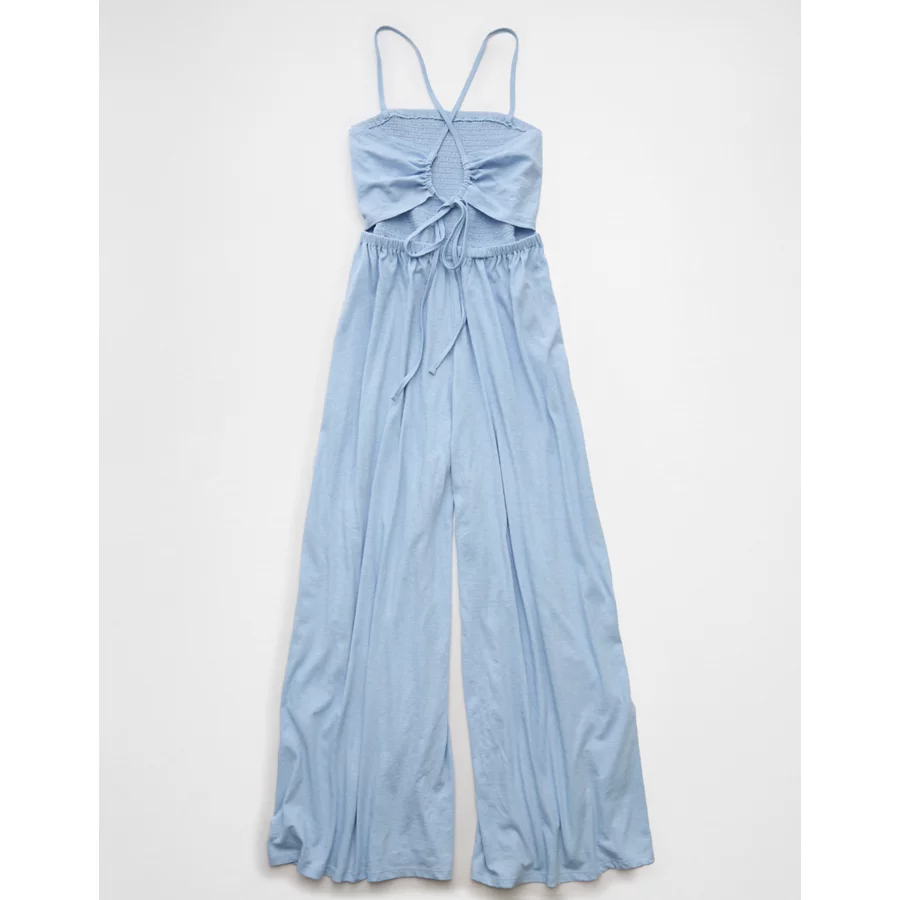 AE Sunchaser Knit Babydoll Jumpsuit – Light Blue