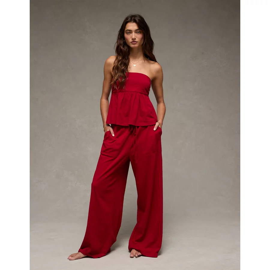 AE Sunchaser Knit Babydoll Jumpsuit - Red