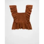 AE Sunchaser Knit Flutter Sleeve Babydoll Shirt – Amber Brown