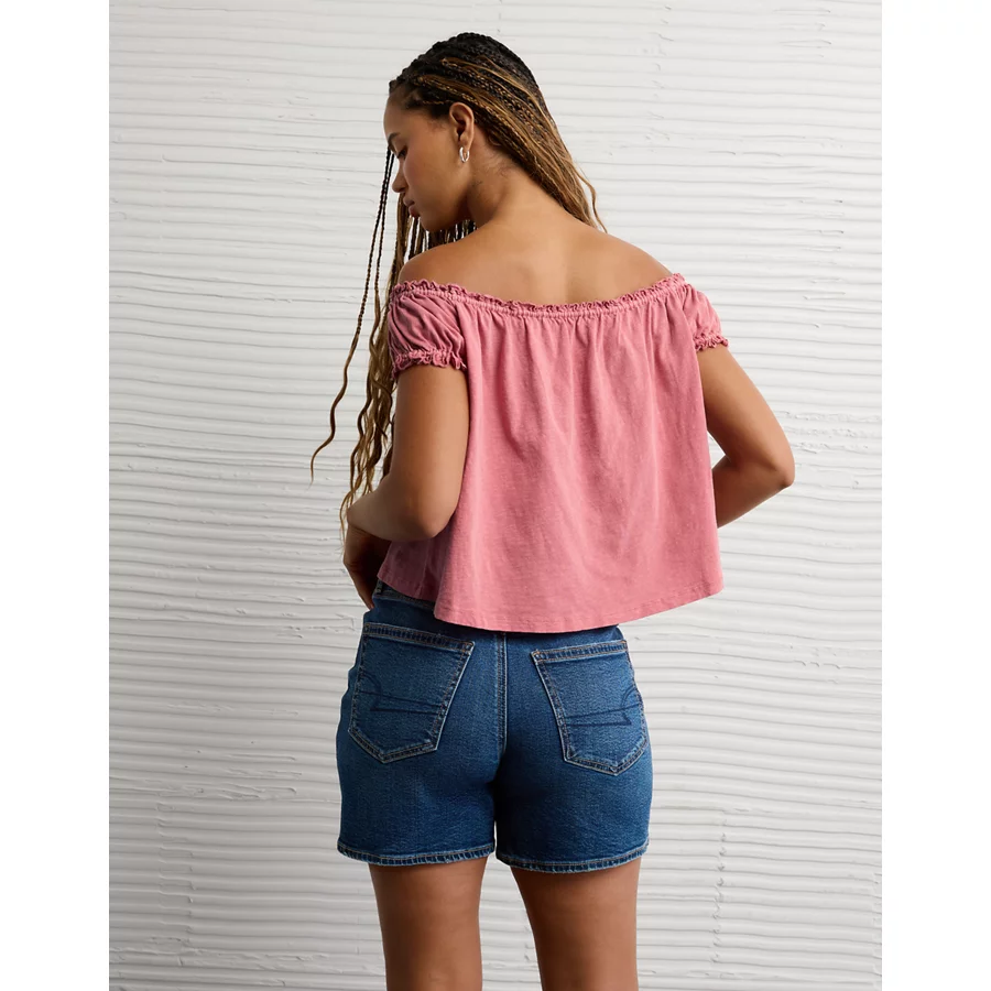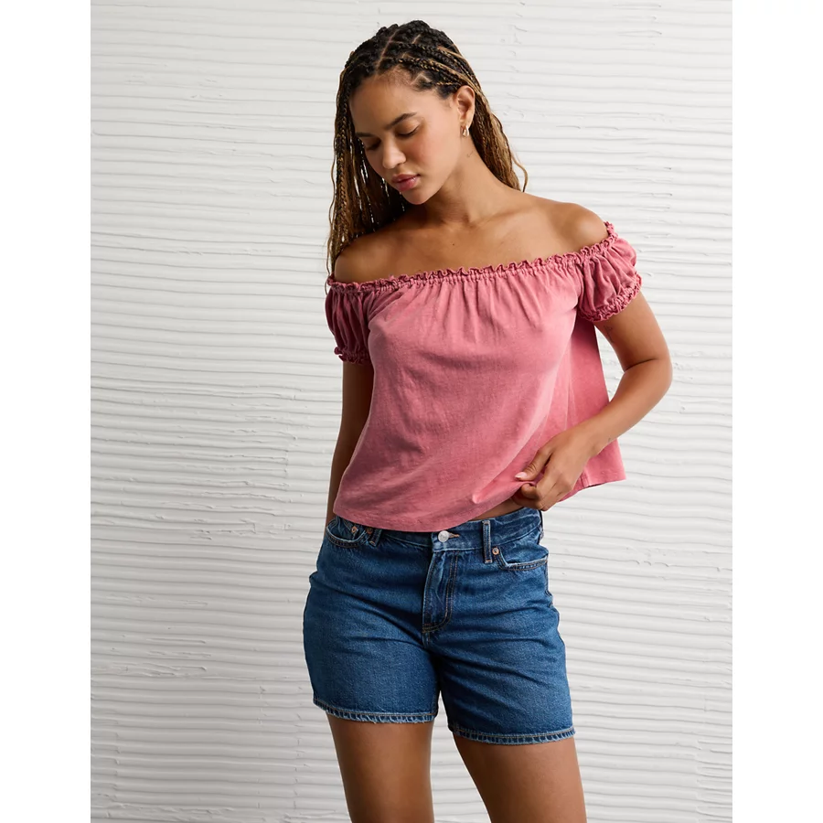 AE Sunchaser Knit Off The Shoulder Swing Top – Blush