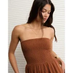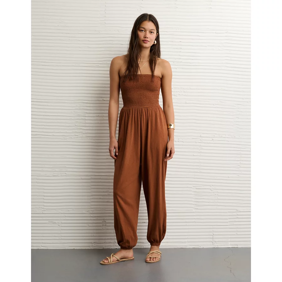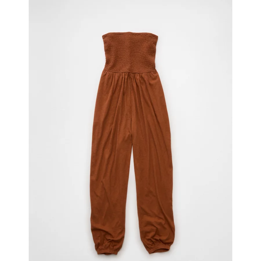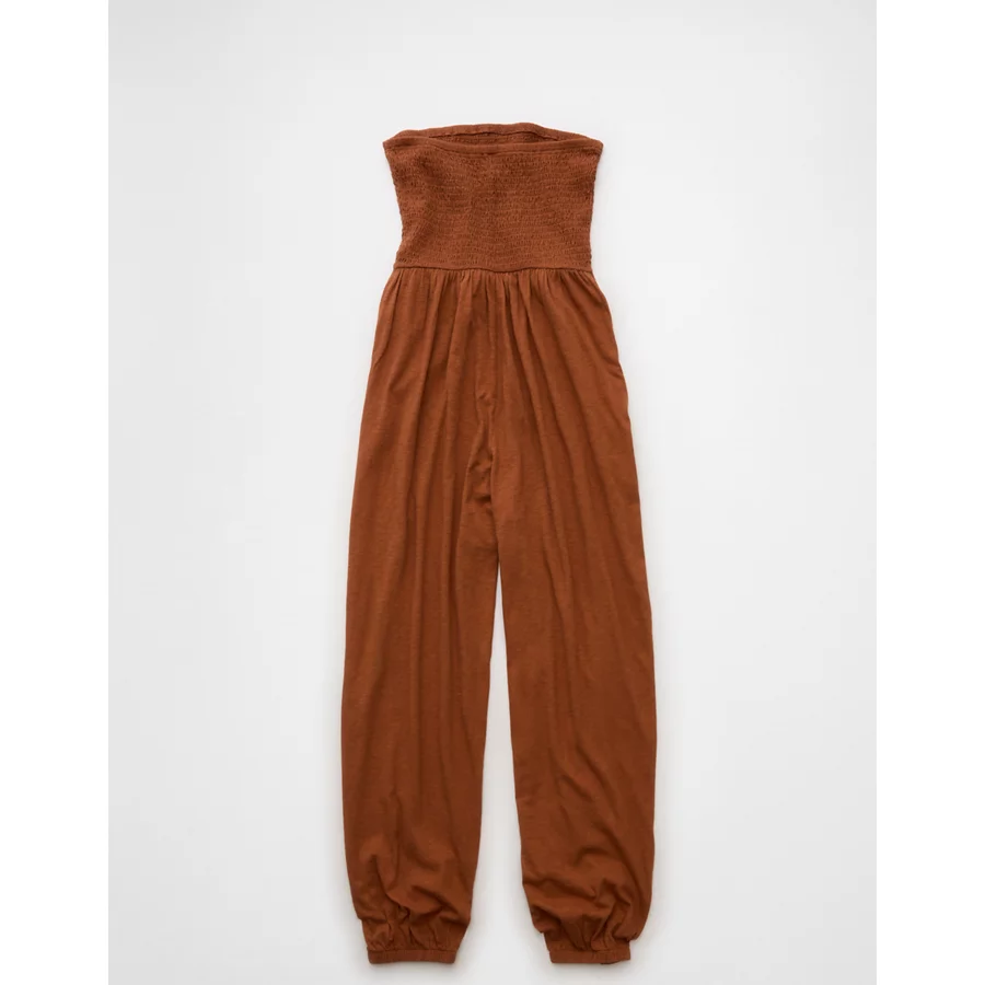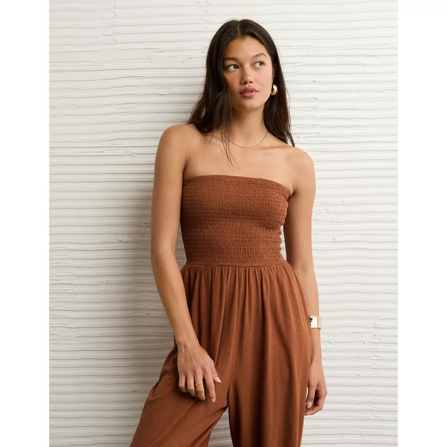 AE Sunchaser Knit Smocked Tube Jumpsuit – Amber Brown
