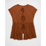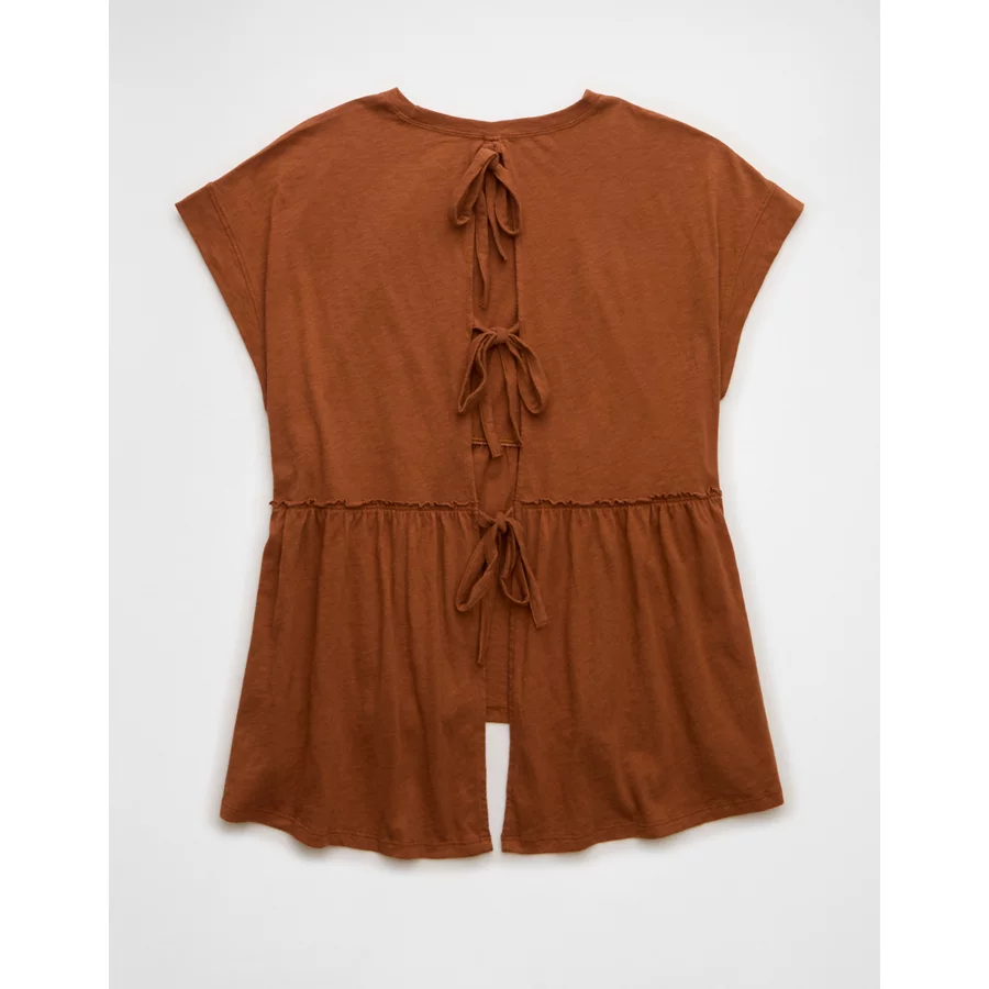AE Sunchaser Knit Tie Back Babydoll T-Shirt – Amber Brown
