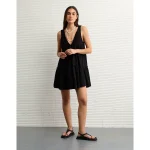 AE Sunchaser Knit V-Neck Crochet Mini Dress – Black