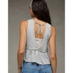 AE Sunchaser Knit V-Neck Swing Tank Top – Heather Gray