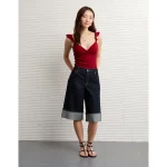 AE 11″ Dreamy Drape Stretch High-Waisted Jort – Light Tinted Wash