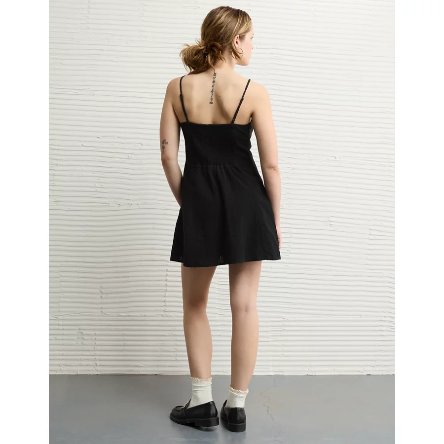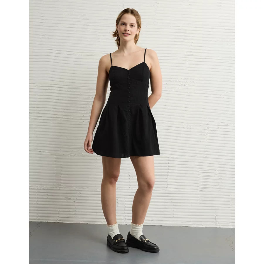 AE Sweetheart Button-Up Mini Dress – Black