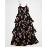Chiffon fabricV-neckAsymmetrical ruffle details throughout 100% PolyesterMachine washImported Slip dress silhouetteMaxi lengthSleeveless