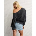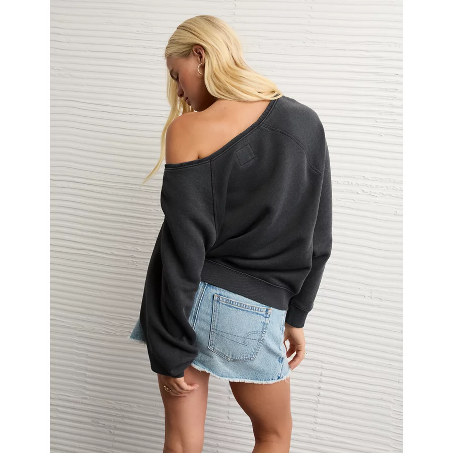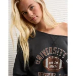 AE Texas Longhorns Graphic Off The Shoulder Sweatshirt – Washed Black