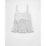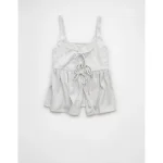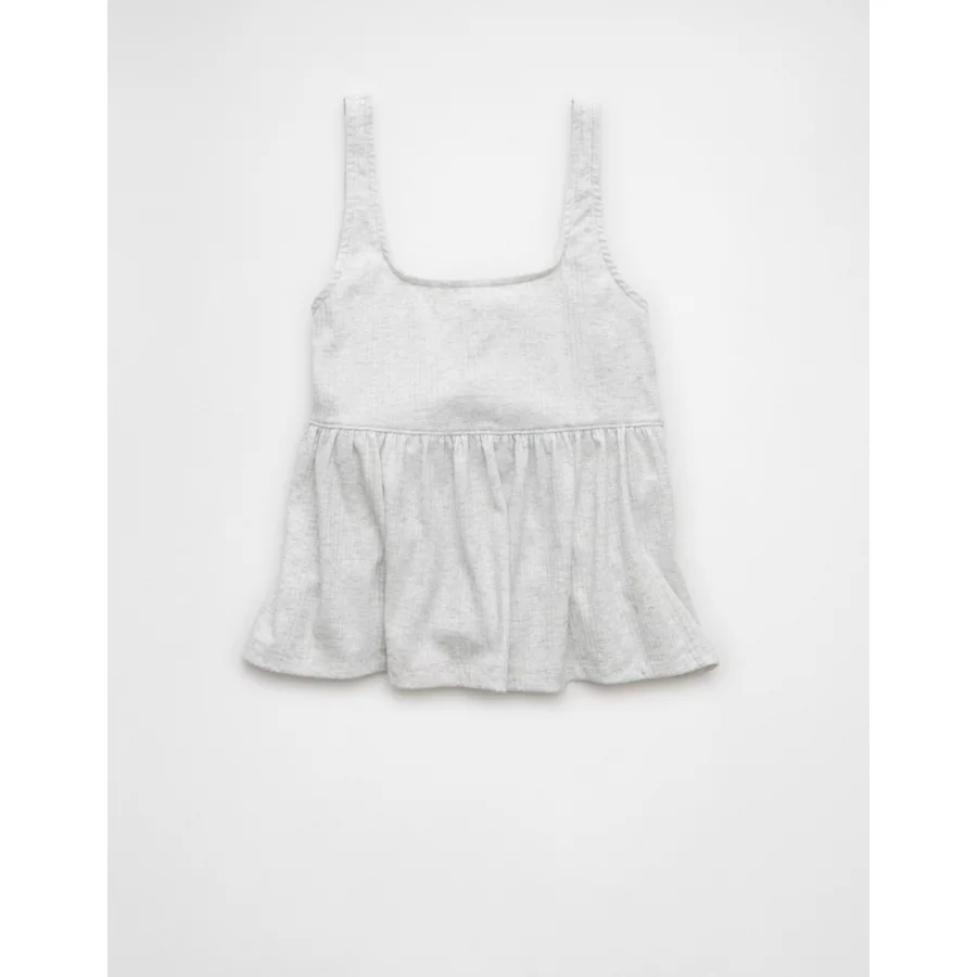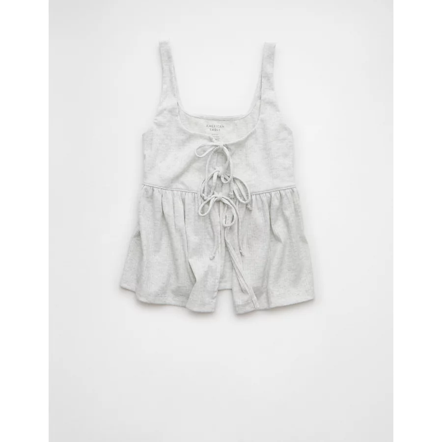 AE Tie Front Flyaway Babydoll Tank Top – Light Heather Gray