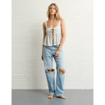 AE 8″ Dreamy Drape Stretch Low-Rise Baggy Jort – Medium Bright Indigo