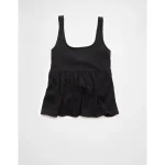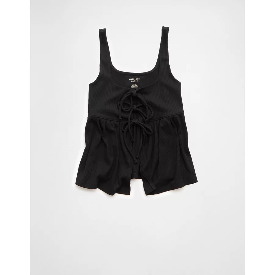 AE Tie Front Flyaway Babydoll Tank Top – True Black