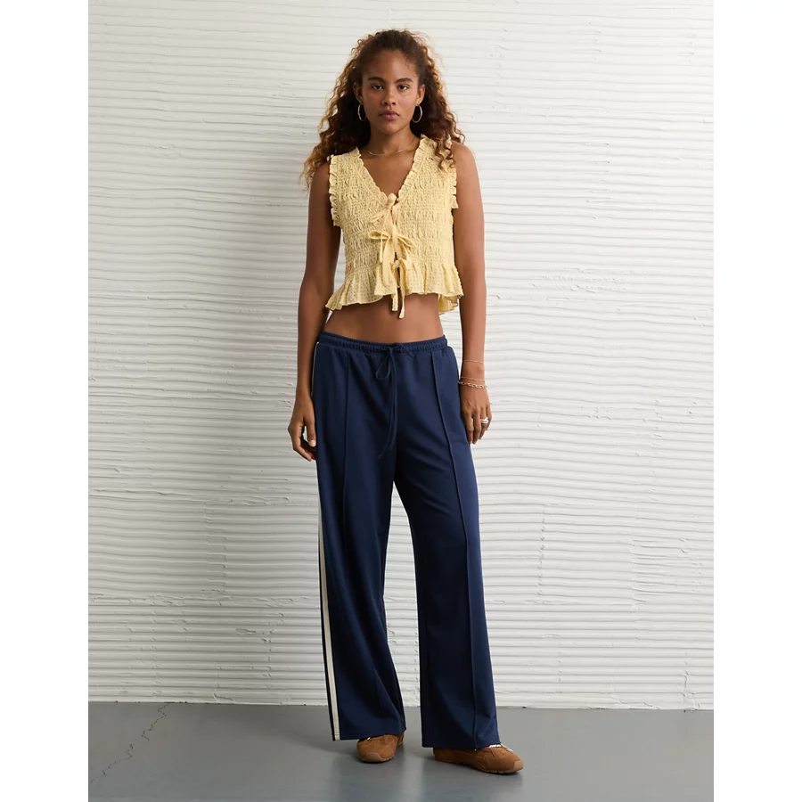 Lightweight fabric with stretchTrouser-inspired pocket stylingPleated front 63% Recycled Polyester, 33% Viscose, 4% SpandexMachine washImported 11 high riseRelaxed fit6 inseam