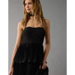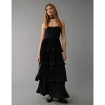 AE Asymmetrical Ruffle Maxi Slip Dress – Blue