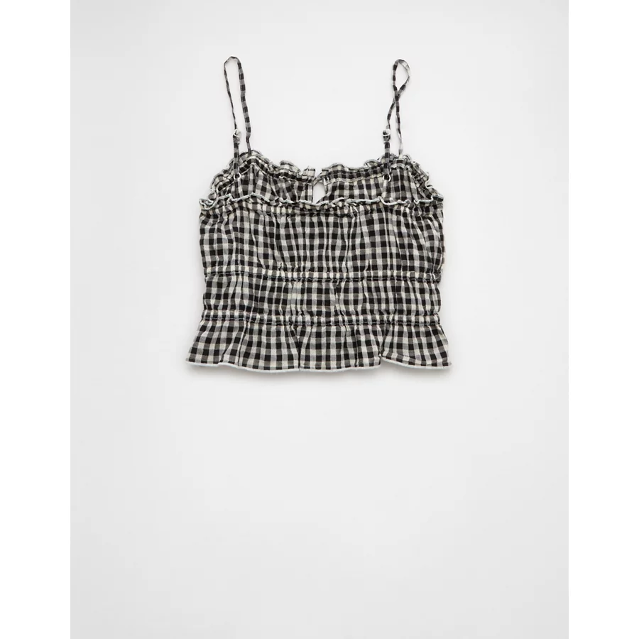 AE Tiered Ruched Tank Top – Black