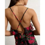 AE Tie-Strap Velvet Mini Dress - Burgundy