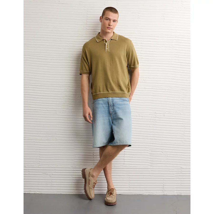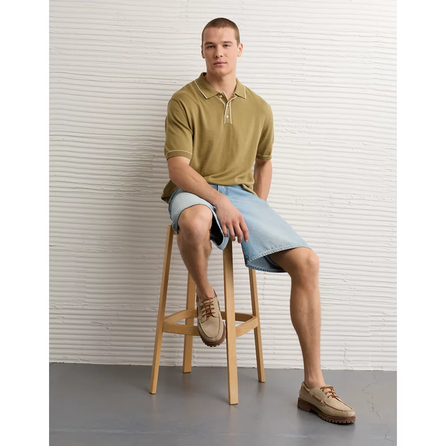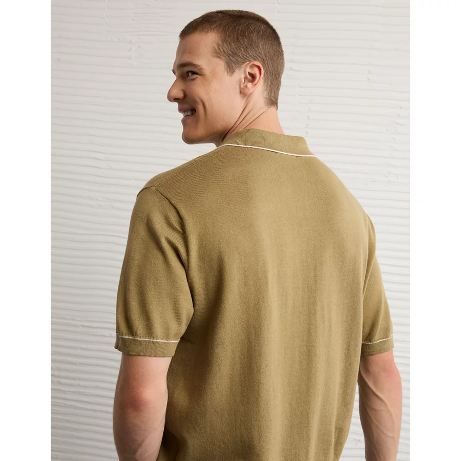 Super soft jersey with added stretchPolo collar with button placketAE 24/7 logoThis is Real Good: Made with the planet in