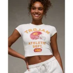 AE USC Trojans Graphic Cropped Baby Tee – Cool White