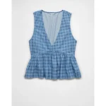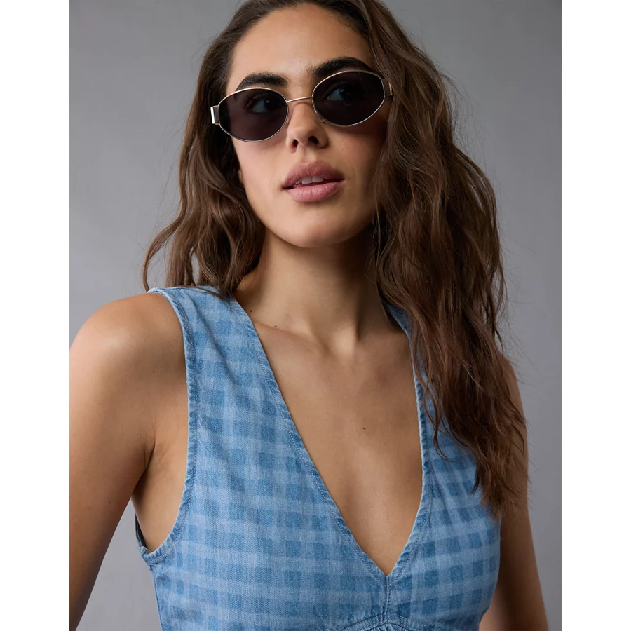 AE V-Neck Denim Babydoll Tank Top – Medium Wash