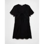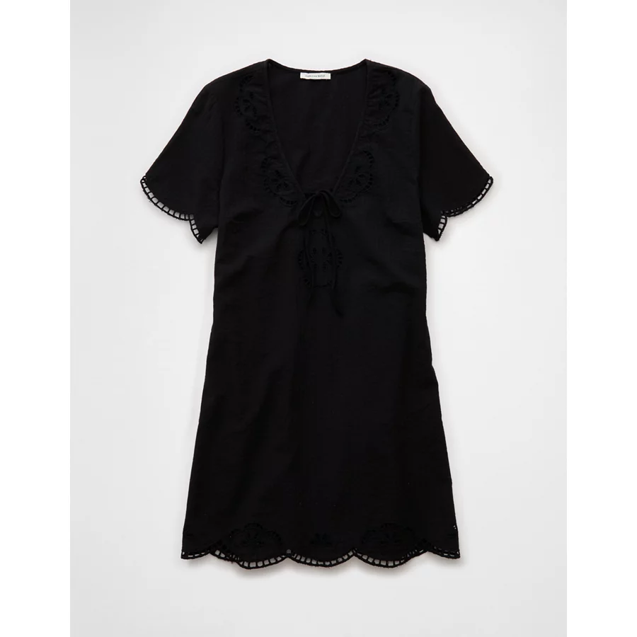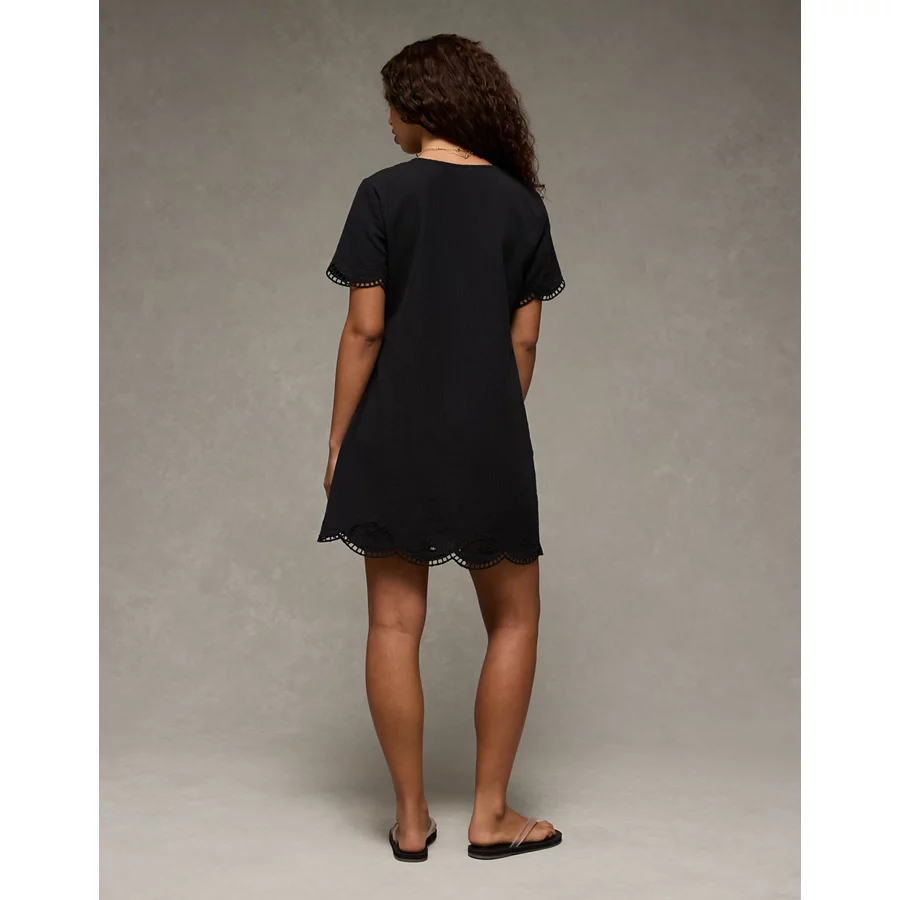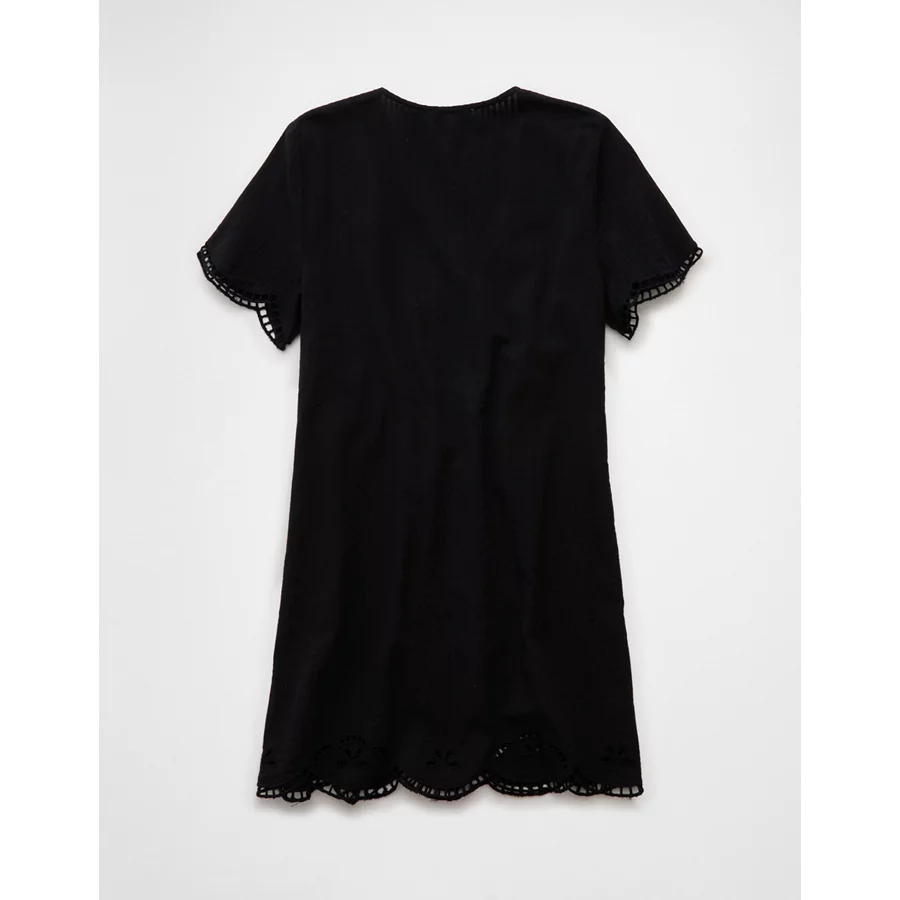 AE V-Neck Embroidered Mini Shift Dress – Black