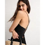 AE V-Neck Pointelle Striped Tank Top - Black