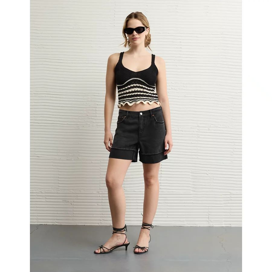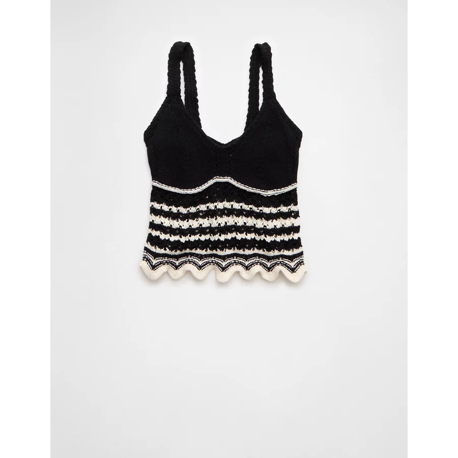 AE V-Neck Pointelle Striped Tank Top – Black