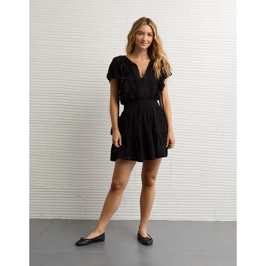 AE V-Neck Ruffled Leopard Print Mini Dress - Multi