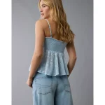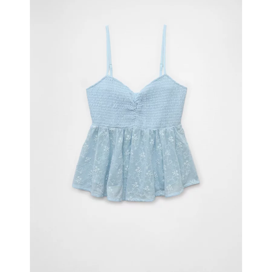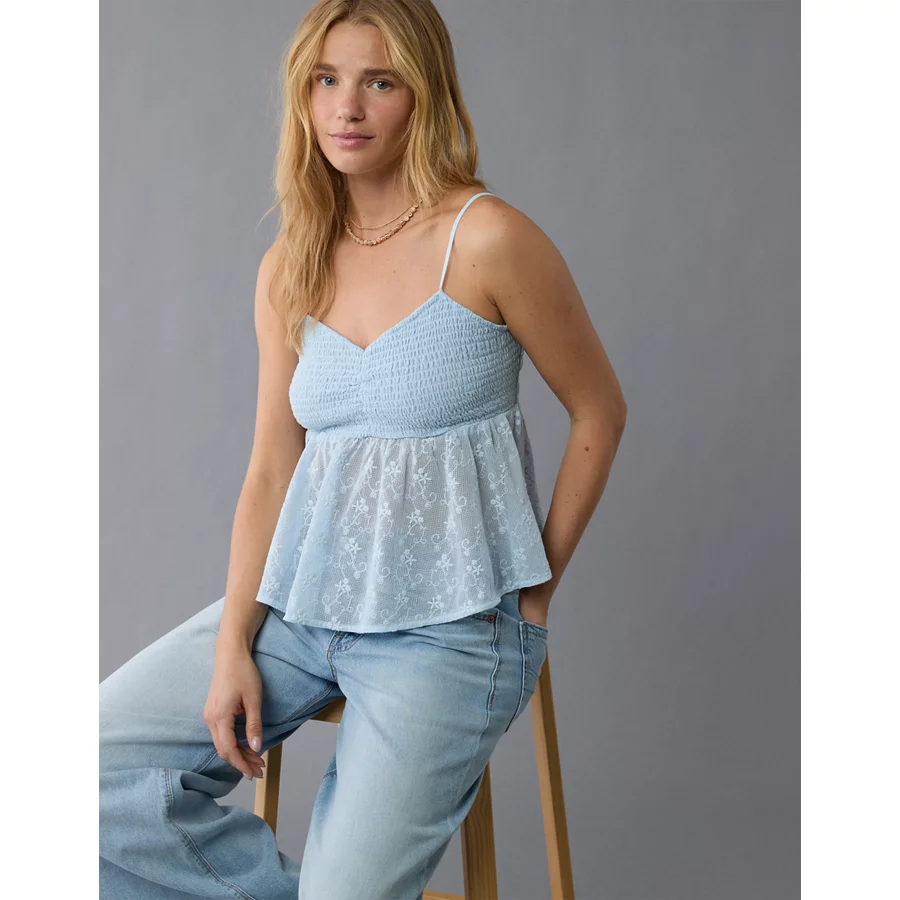 AE V-Neck Smocked Babydoll Cami – Light Blue