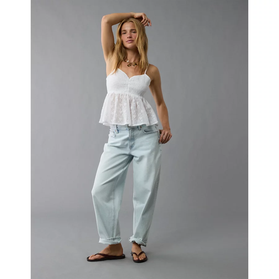 AE V-Neck Smocked Babydoll Cami - Light Blue