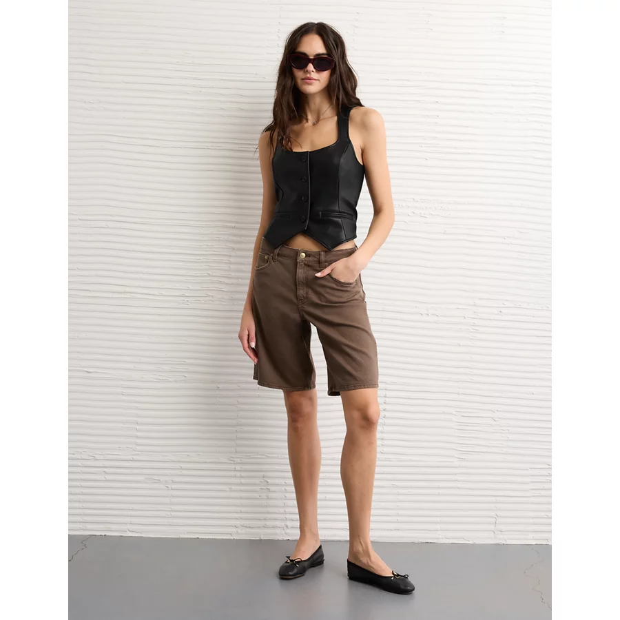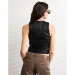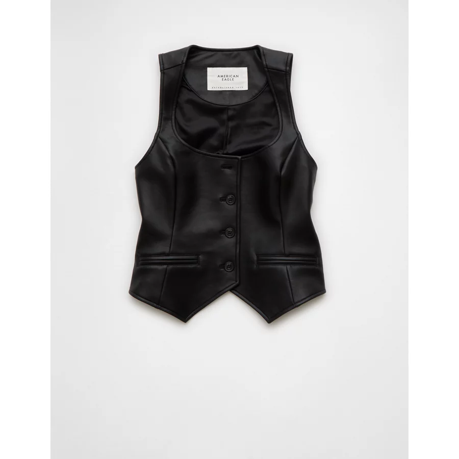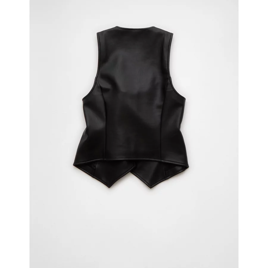 AE Vegan Leather Square Neck Waistcoat – Black