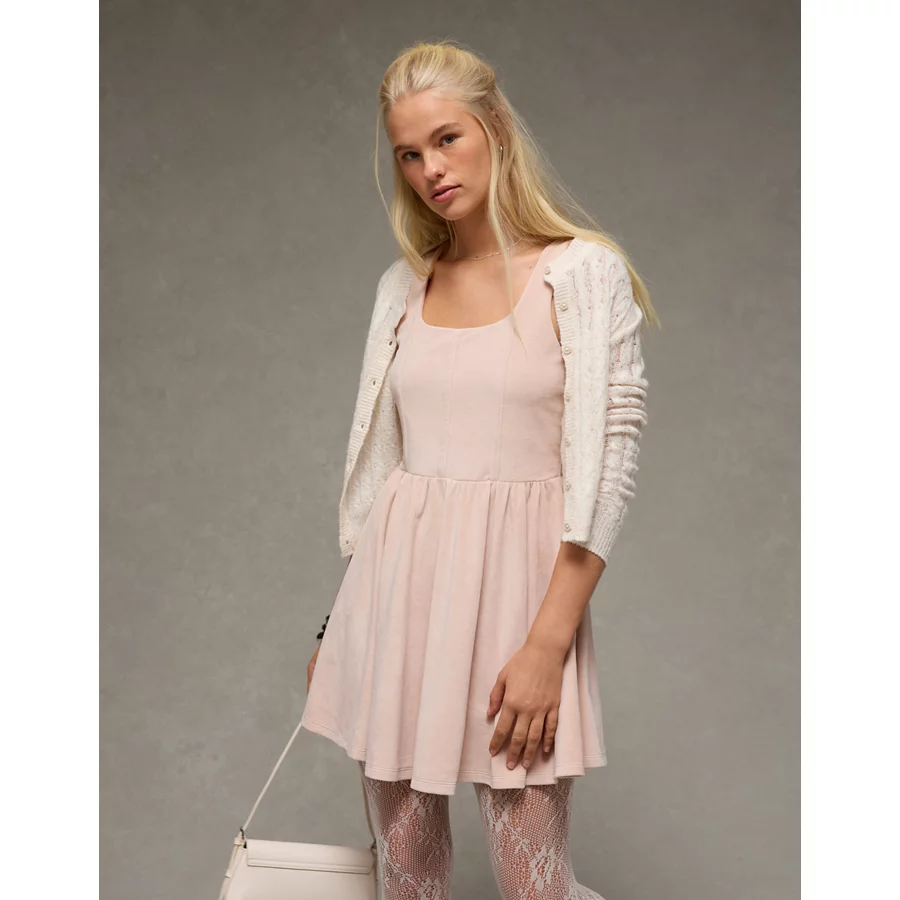 AE Velvet Corset Mini Dress – Clear Beige