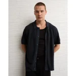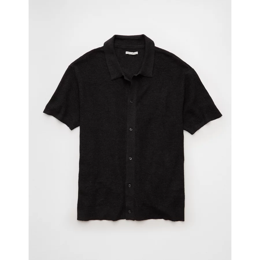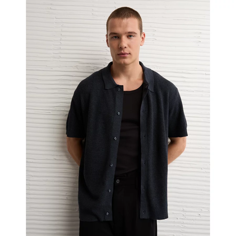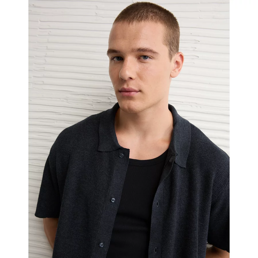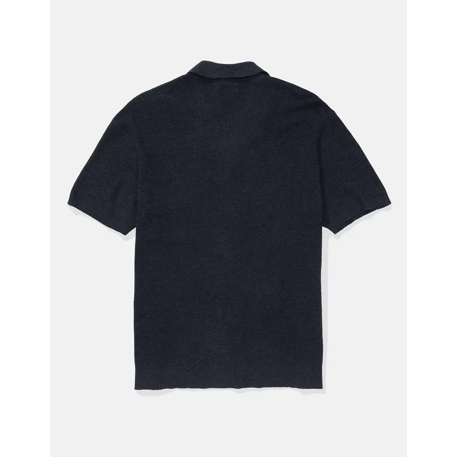 AE Waffle Button-Up Polo Shirt – Charcoal