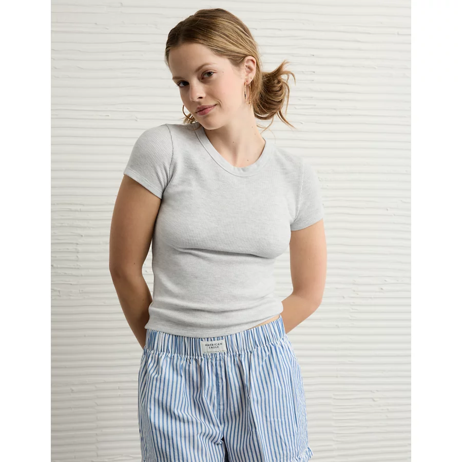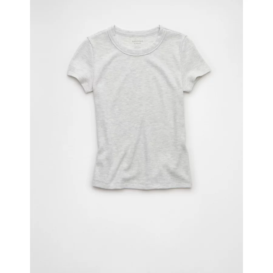 AE Waffle Hey Baby Tee – Light Heather Gray