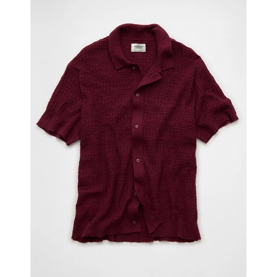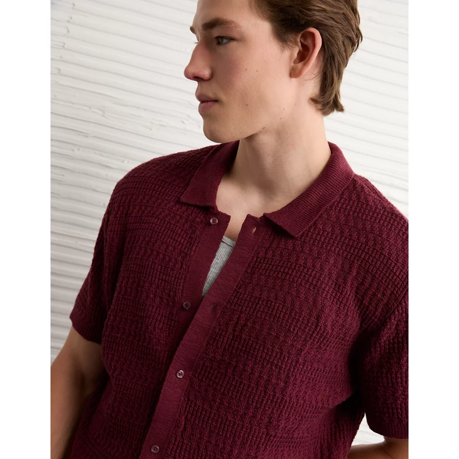 AE Weekend Button-Up Sweater Polo Shirt – Wineberry