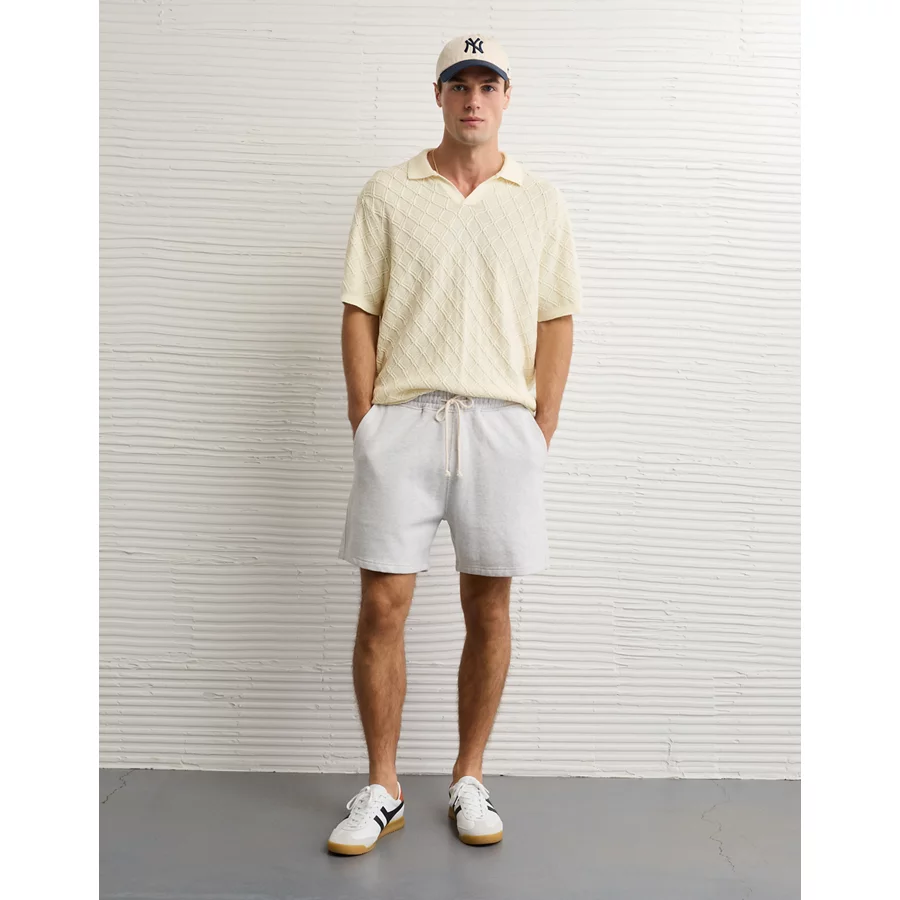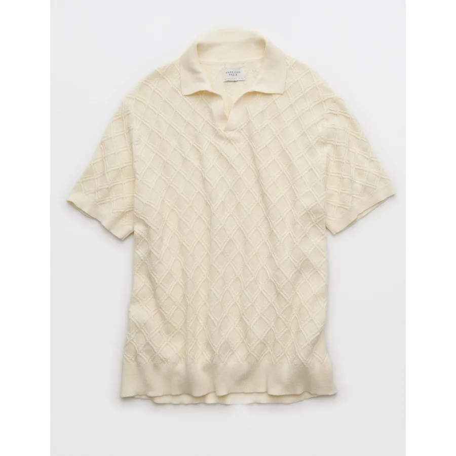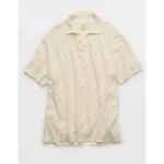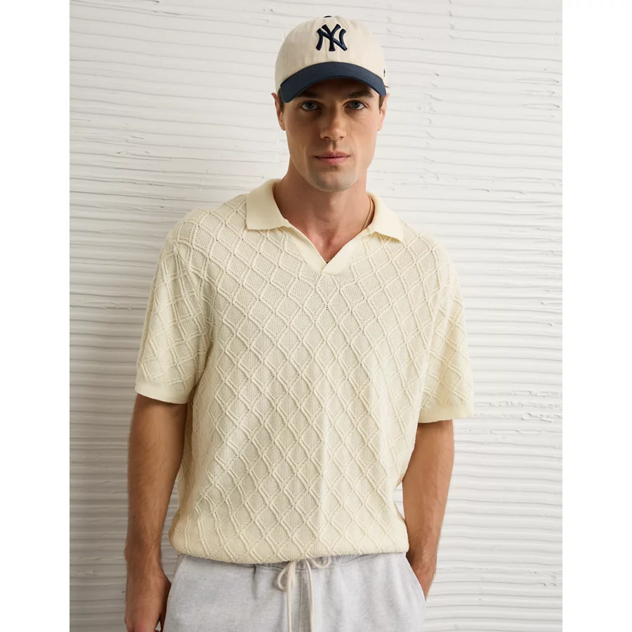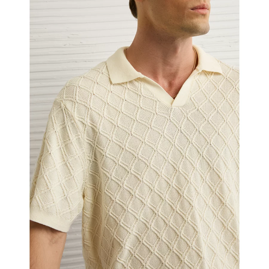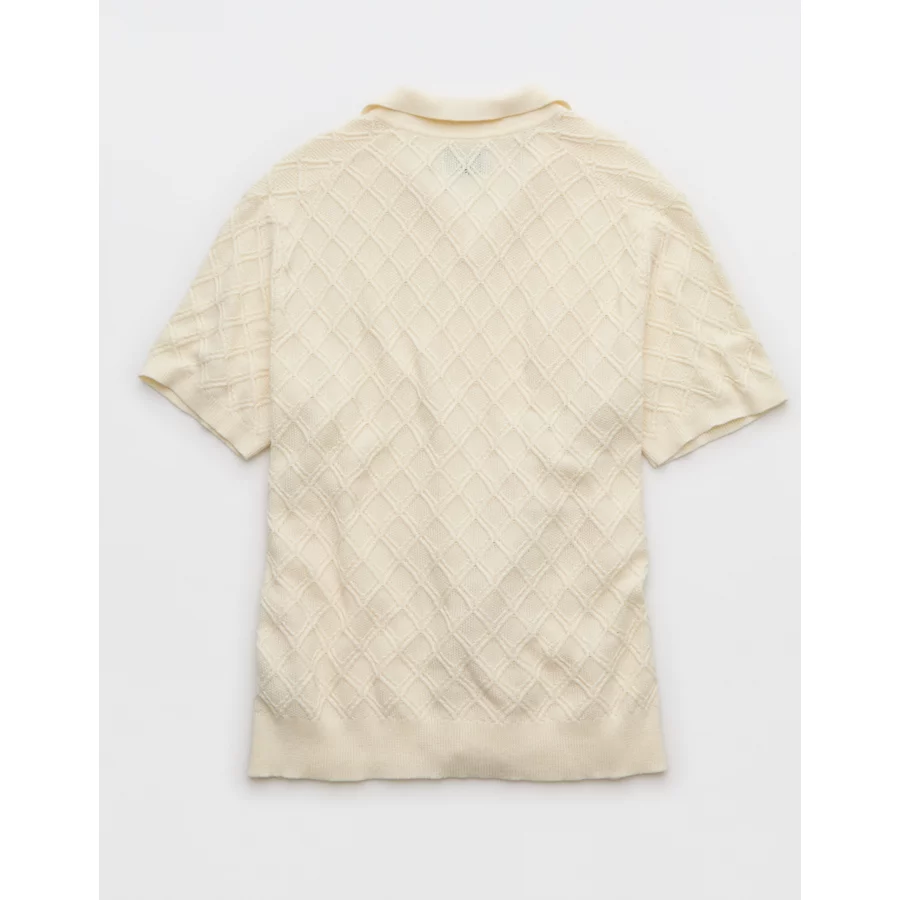 AE Weekend Cable Knit Sweater Polo Shirt – Cream