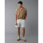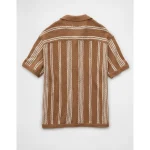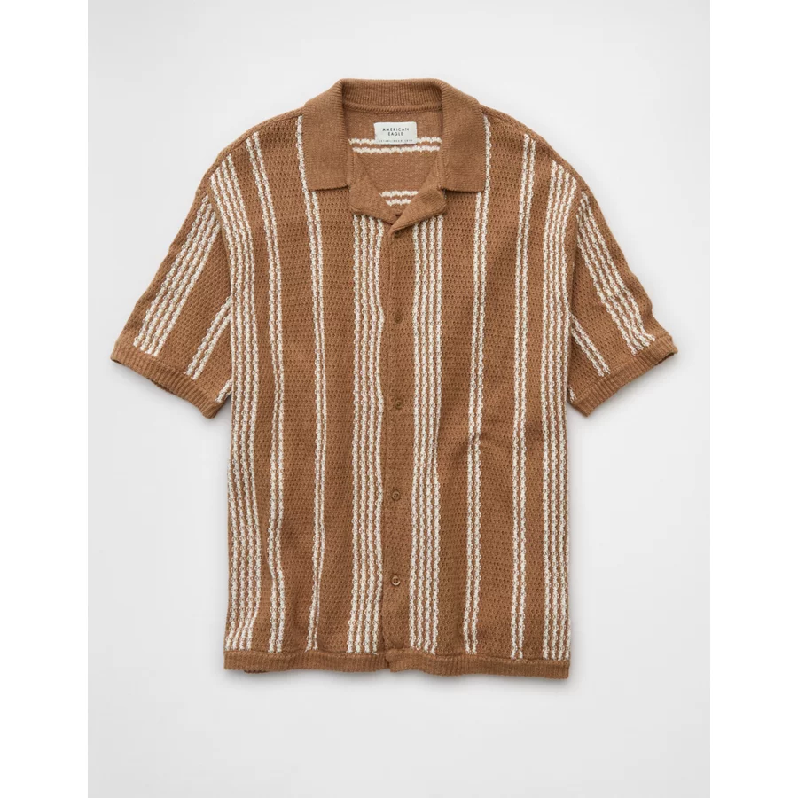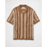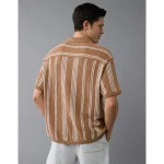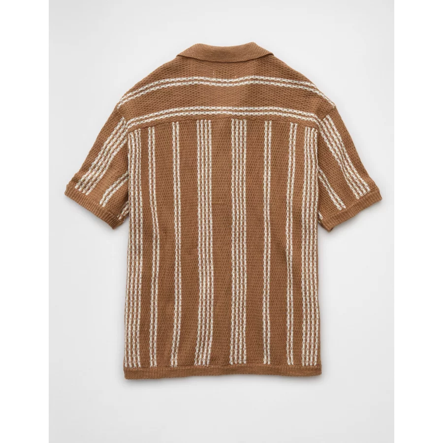 AE Weekend Striped Button-Up Sweater Polo Shirt – Tan