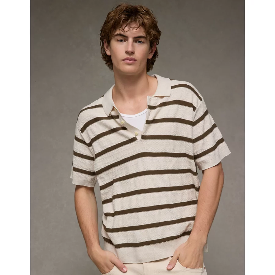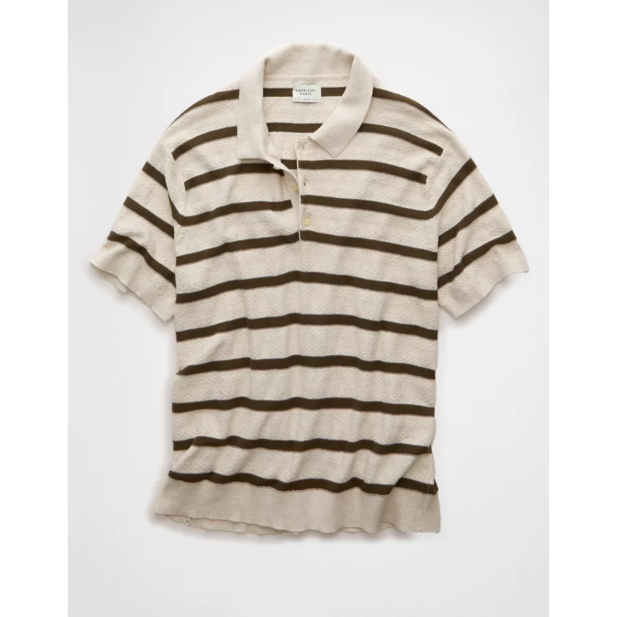 AE Weekend Striped Sweater Polo Shirt – Empire Cream