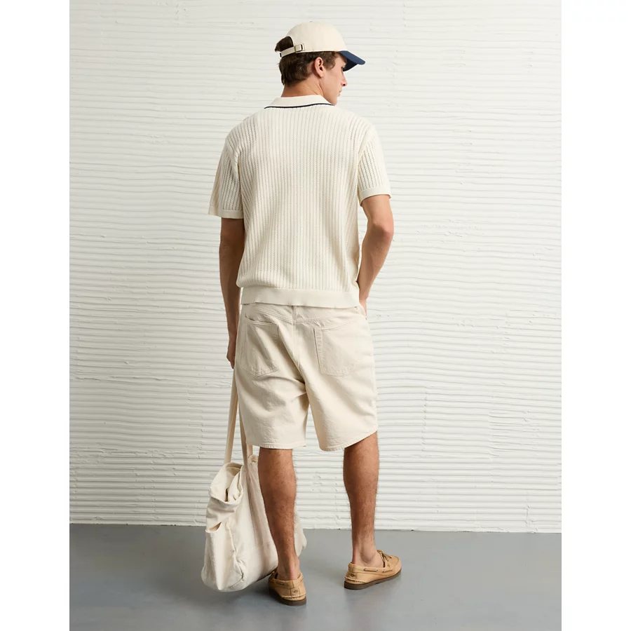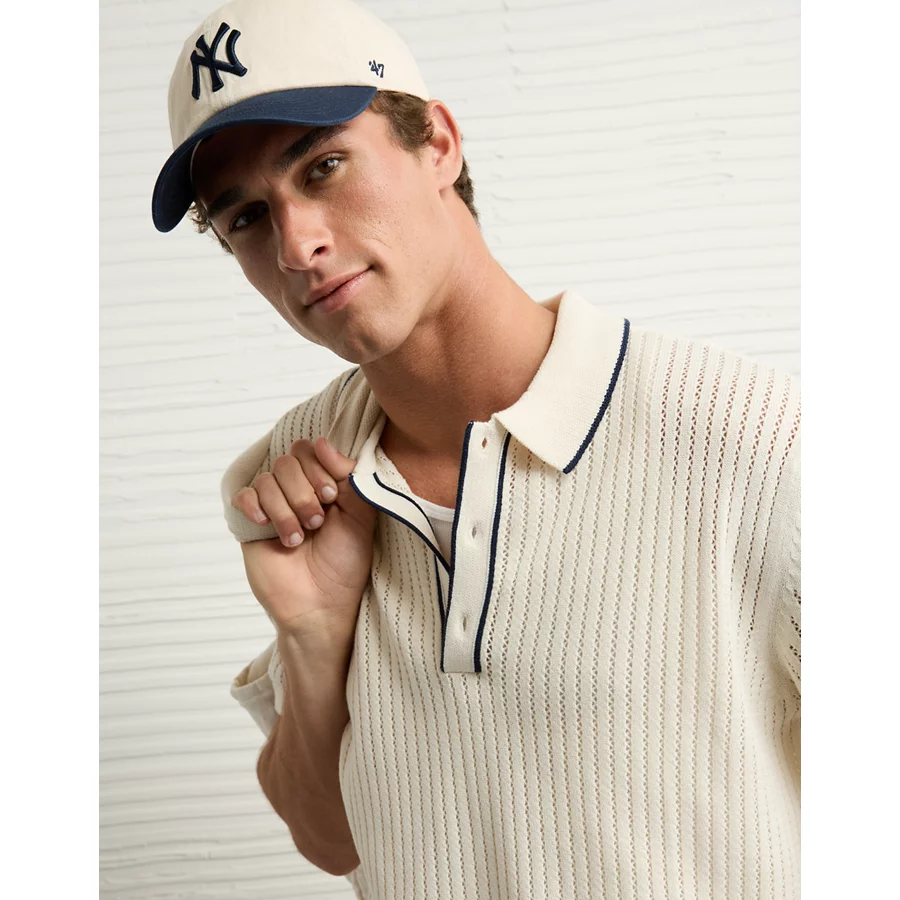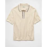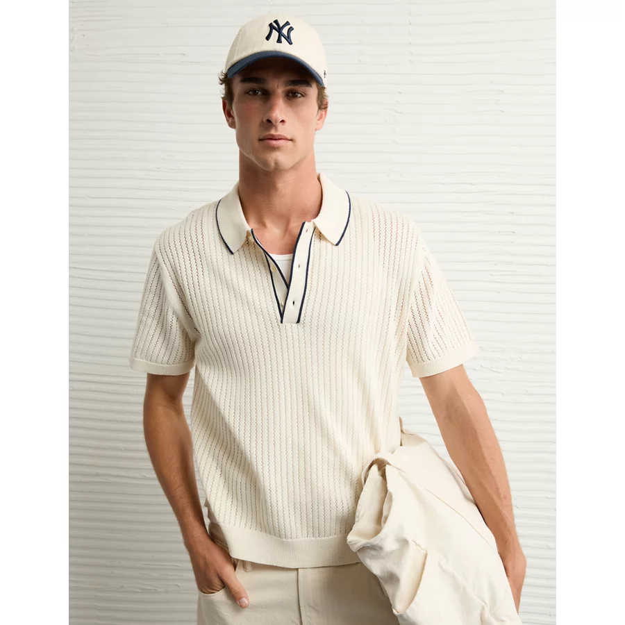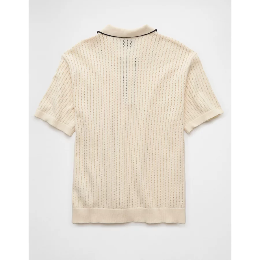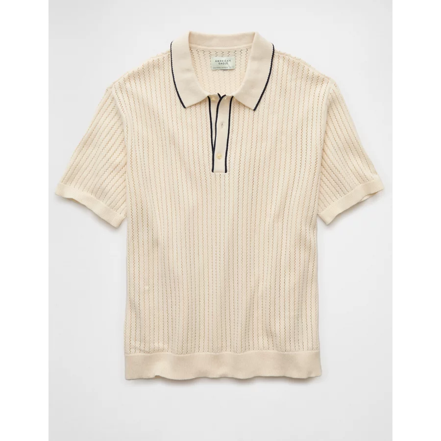 AE Weekend Tipped Sweater Polo Shirt – Cream