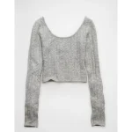 AE Whoa So Soft Cropped Scoop Neck Sweater – Medium Heather Gray