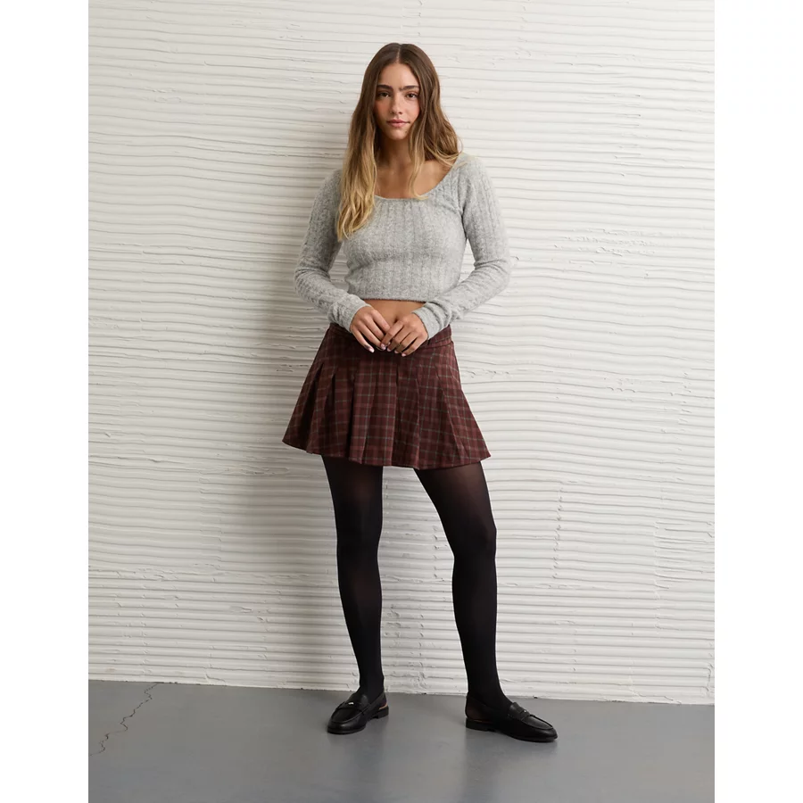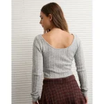 AE Whoa So Soft Cropped Scoop Neck Sweater - Grey
