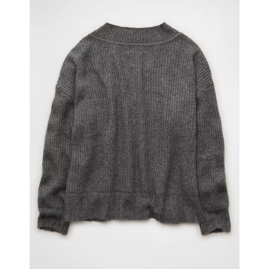 AE Whoa So Soft Oversized V-Neck Sweater – Charcoal Heather Gray