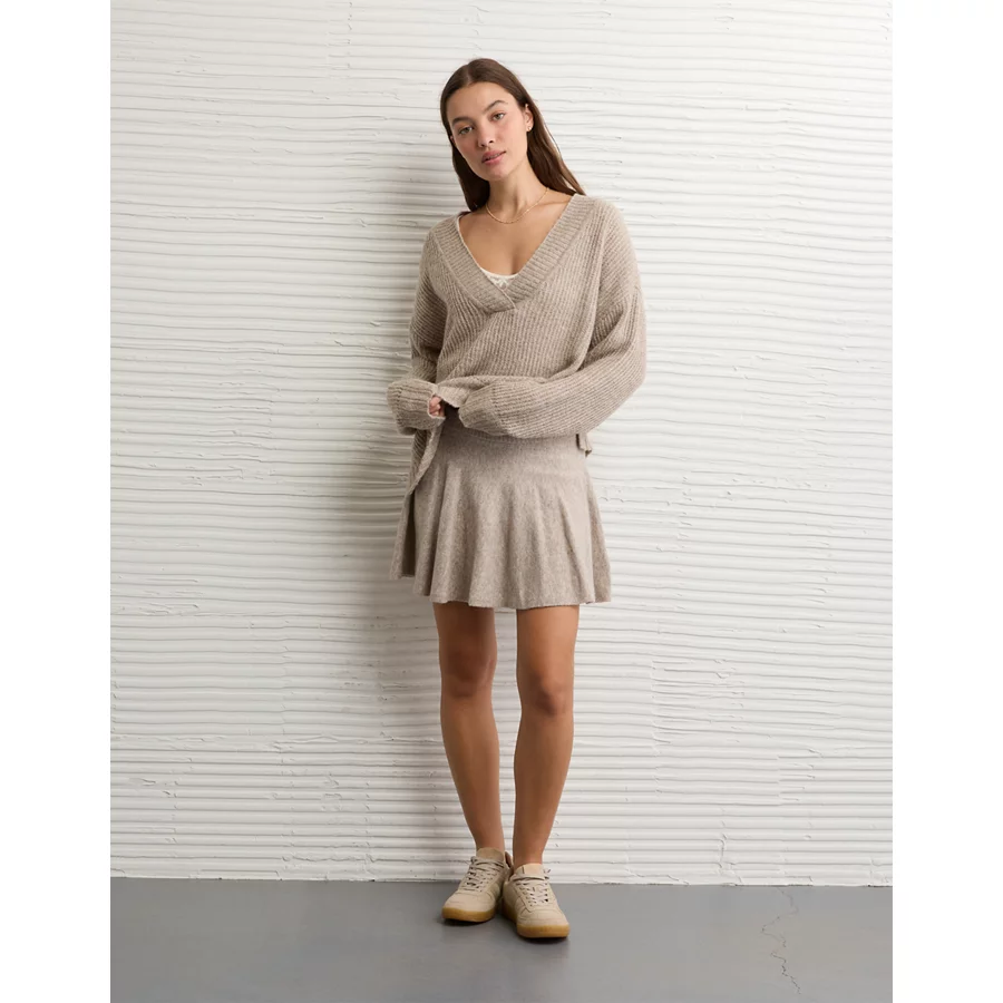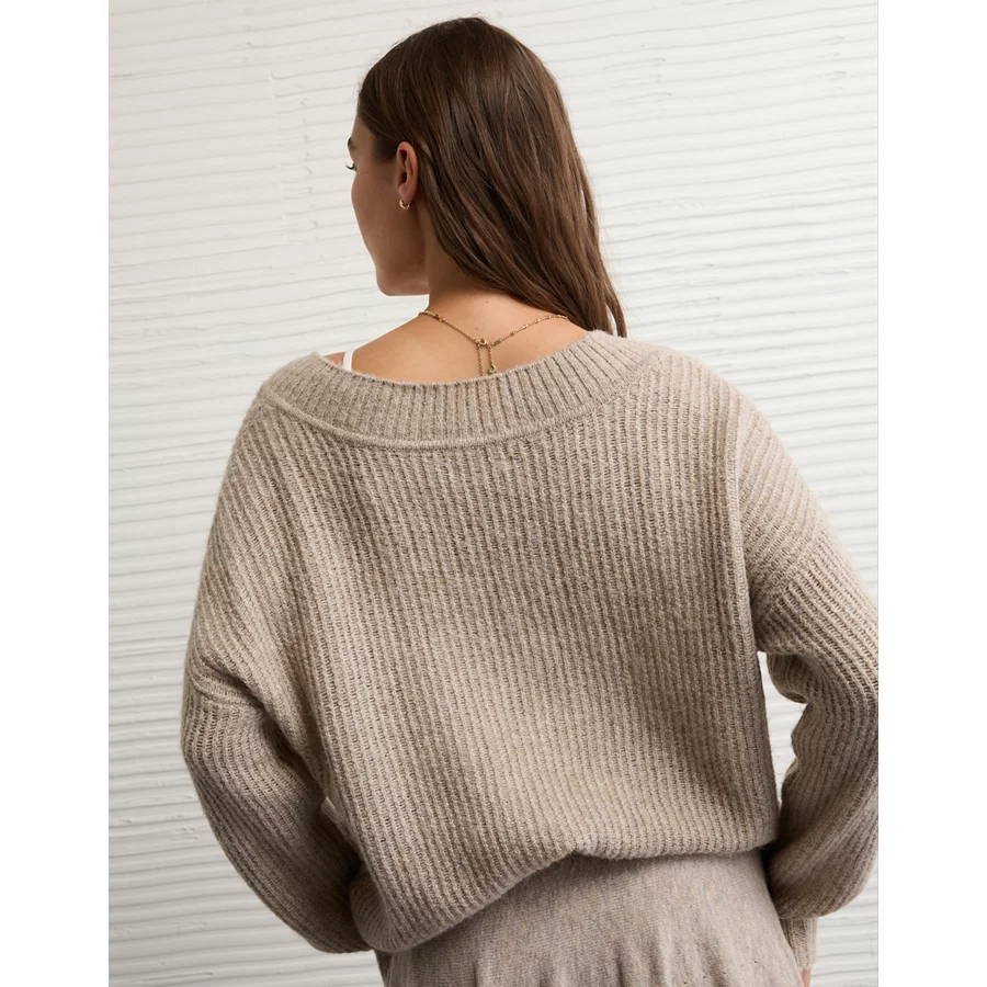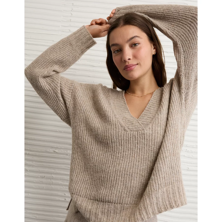 AE Whoa So Soft Oversized V-Neck Sweater – Toasted Almond