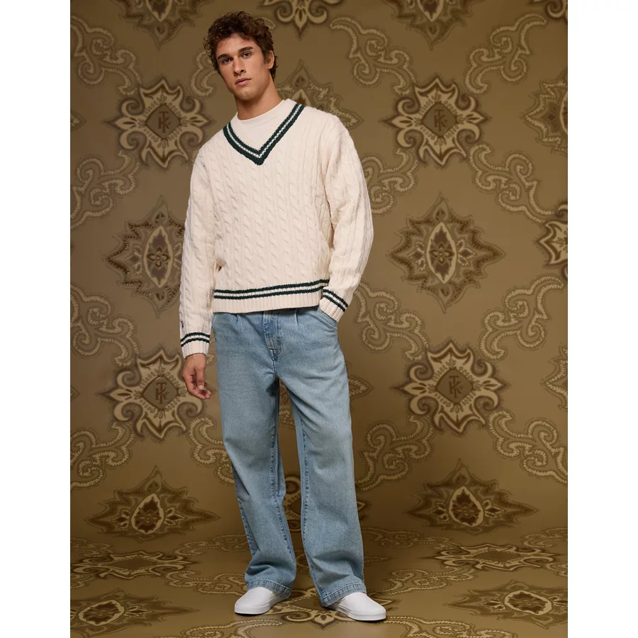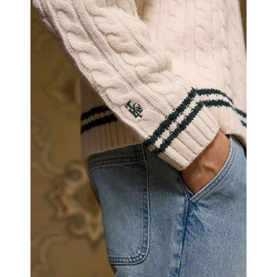 AE x Tru Kolors Cable Knit Cricket Sweater – Cream