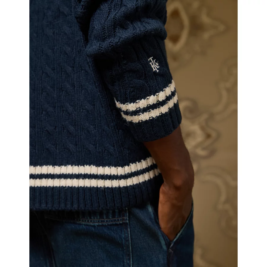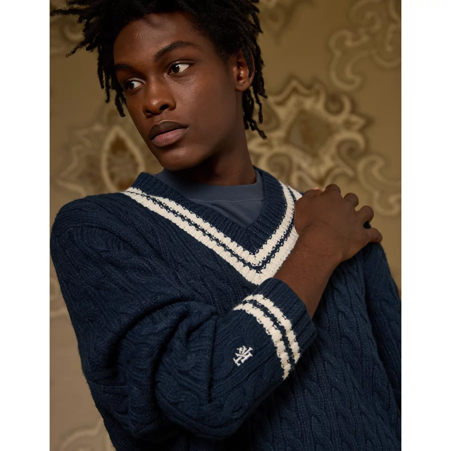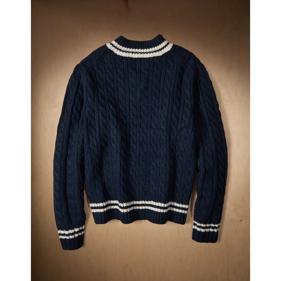 AE x Tru Kolors Cable Knit Cricket Sweater – Navy